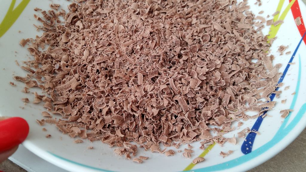 Шоколадът се настъргва на едро ренде.