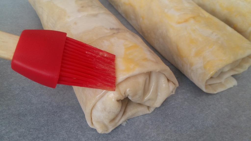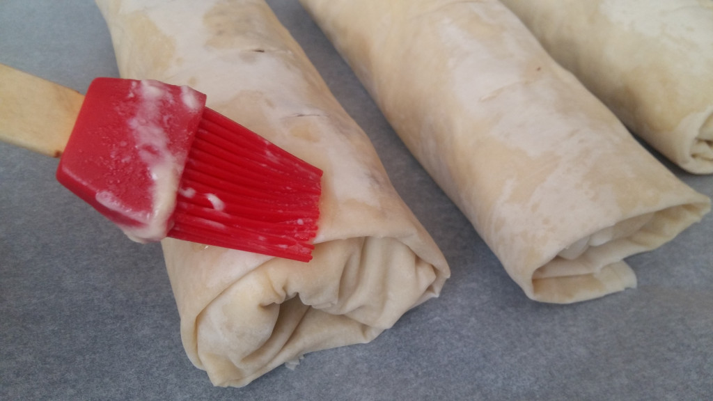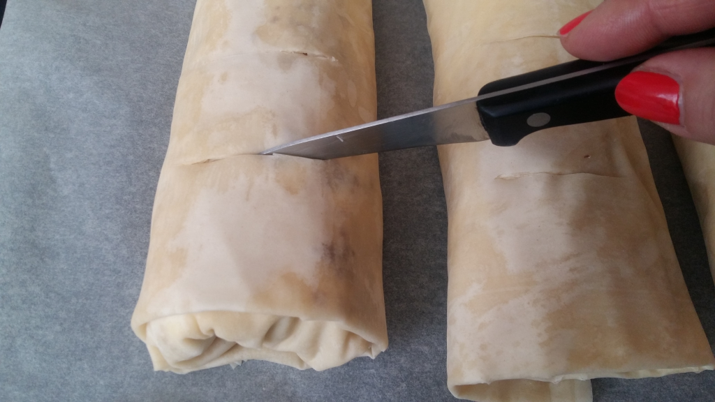 Рулото се поставя в тава и с помощта на нож се правят няколко напречни разреза.