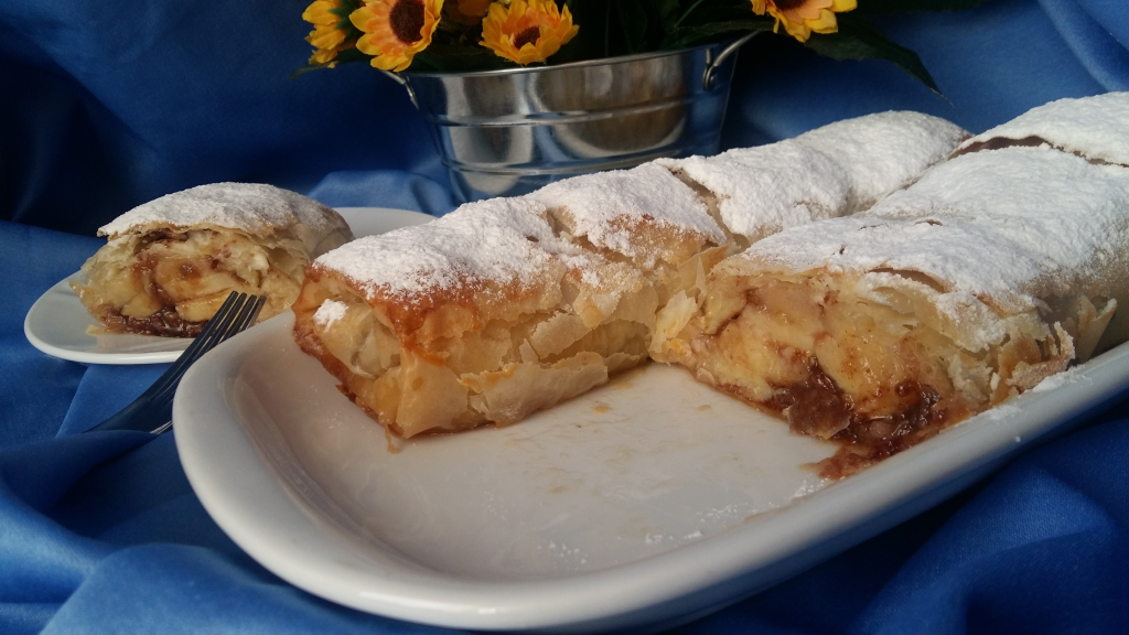 Вкусна рецепта, в която главен герой е бананът. Не за първи път приготвям щрудел, но този определено ме очарова с много нежен, фин вкус от комбинация на банан, шоколад и масло, а в същото време бърз и много лесен за приготвяне. Определено влиза в листа с любими рецепти.