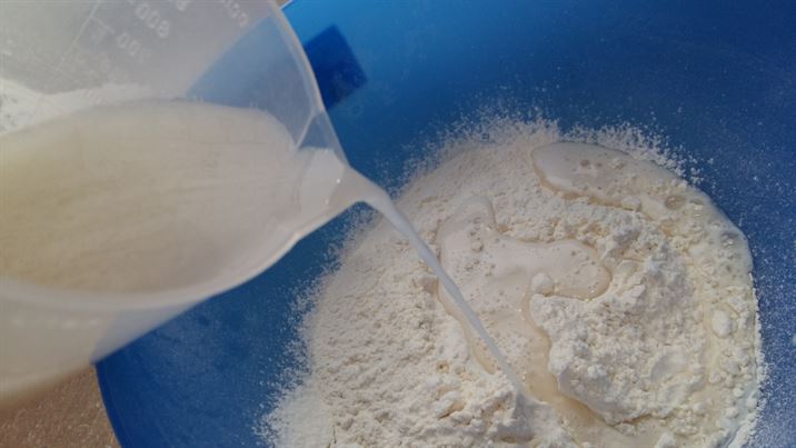 и една чаена лъжица брашно. Оставете за 10-15 минути да се надигне.