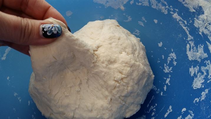 Добавете постепенно останалата част от брашното, и месете докато престане да лепне и стане гладко и еластично тесто