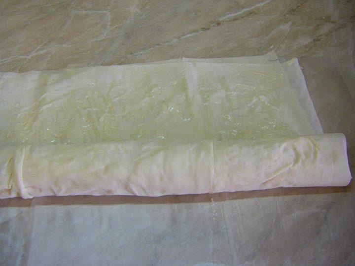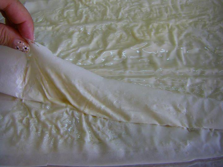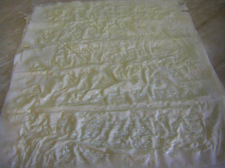 РАЗГЪВАМЕ ЕДНА КОРА, НАМАЗВАМЕ С ГОТОВАТА СМЕС, ОТГОРЕ СЛАГАМЕ ВТОРА КОРА, НАМАЗВАМЕ ОТНОВО СЪС СМЕСТА