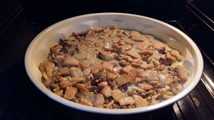 Изсипете го на дъното на тавичка с размер от 26 см.