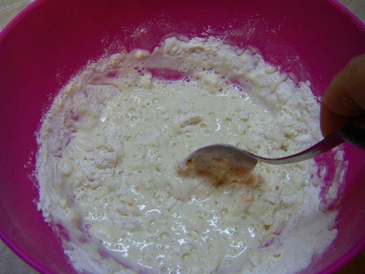 ПОСТЕПЕННО ПРИБАВЕТЕ ПРЕСЯТО БРАШНО И СОЛТА