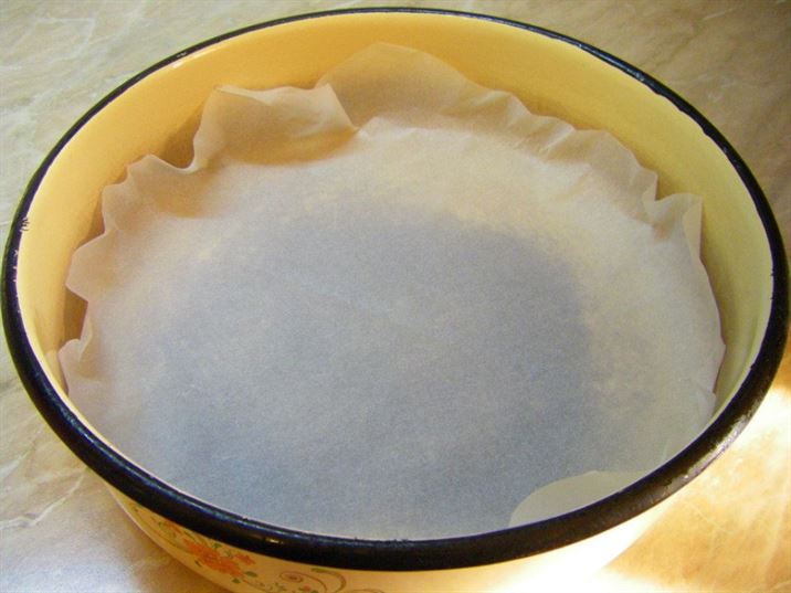 В НАМАЗНЕНА И ЗАСТЛАНА С ХАРТИЯ ТАВА С ДИАМЕТЪР 32 СМ СЛОЖЕТЕ ЕДНАТА ЧАСТ В СРЕДАТА