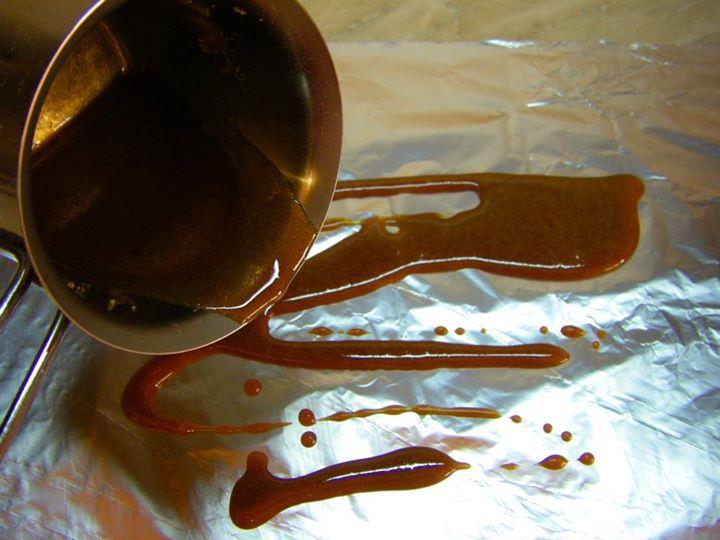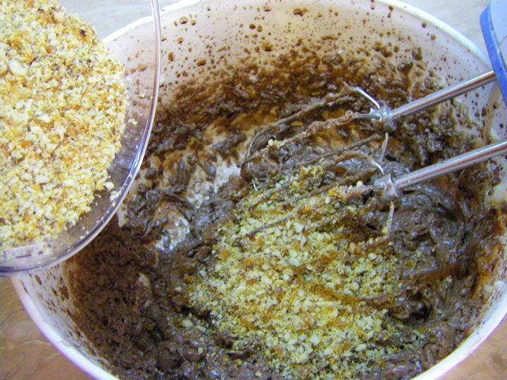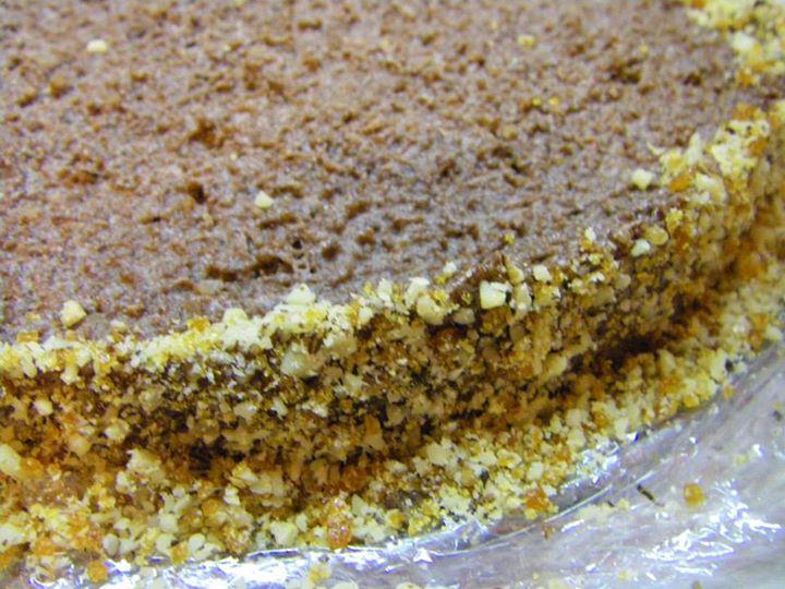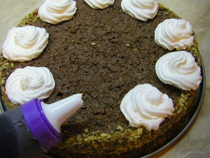 ПРИГОТВЯНЕ НА КРЕМА: РАЗБИВАМЕ МАСЛОТО И ДОБАВЯМЕ ПУДРАТА ЗАХАР.СВАРЯВАМЕ КАКАОТО С 200 МЛ ВОДА И СЛЕД КАТО СЕ ОХЛАДИ НАПЪЛНО ГО ПРИБАВЯМЕ КЪМ МАСЛЕНИЯ КРЕМ.ОТ КРИСТАЛНАТА ЗАХАР ПРАВИМ СВЕТЪЛ КАРАМЕЛ,ИЗСИПВАМЕ ГО ВЪРХУ ФОЛИО (КАКТО МОЖЕ ДА ВИДИТЕ ОТ СНИМКИТЕ “СТЪПКА ПО СТЪПКА”) И СЛЕД КАТО ИЗСТИНЕ,ГО НАТРОШАВАМЕ В БЛЕНДЕР (АКО НЯМАТЕ СЛОЖЕТЕ ГО В ДВА НАЙЛОНОВИ ПЛИКА И С ЧУК ГО НАТРОШЕТЕ НА СИТНО) И ГО СМЕСВАМЕ СЪС СМЛЕНИТЕ ОРЕХИ.ПОЛУЧЕНИЯ КРОКАН РАЗДЕЛЯМЕ И ЕДНА ЧАСТ ПРИБАВЯМЕ КЪМ МАСЛЕНИЯ КРЕМ И АРОМАТИЗИРАМЕ С ВАНИЛИЯТА,А ДРУГИЯ СИ ОСТАВЯМЕ ДА ДЕКОРИРАМЕ ТОРТАТА. НАРЯЗВАМЕ БЛАТОВЕТЕ НА КВАДРАТИ, ИЗСИПВАМЕ ГИ В ДЪЛБОКА КУПА И КЪМ ТЯХ ПРИБАВЯМЕ ГОТОВИЯ МАСЛЕН КРЕМ. РАЗБЪРКВАМЕ ВНИМАТЕЛНО С ГОЛЯМА ЛЪЖИЦА. ГОТОВАТА СМЕС ИЗСИПВАМЕ В ТОРТЕНА ФОРМА С ПОДВИЖЕН ПРЪСТЕН. ЗАГЛАЖДАМЕ ОТГОРЕ И ОСТАВЯМЕ ЗА ЕДНА НОЩ В ХЛАДИЛНИКА, ЗА ДА МОЖЕ ТОРТАТА ДА СЕ СТЕГНЕ. СЛЕД ТОВА МАХАМЕ ПОДВИЖНИЯ ПРЪСТЕН И УКРАСЯВАМЕ БОРДА С ОСТАНАЛИЯ КРОКАН, А ОТГОРЕ С ПОМОЩТА НА ШПРИЦ УКРАСЯВАМЕ ПО ЖЕЛАНИЕ С ГОТОВИЯ СМЕТАНОВ КРЕМ.