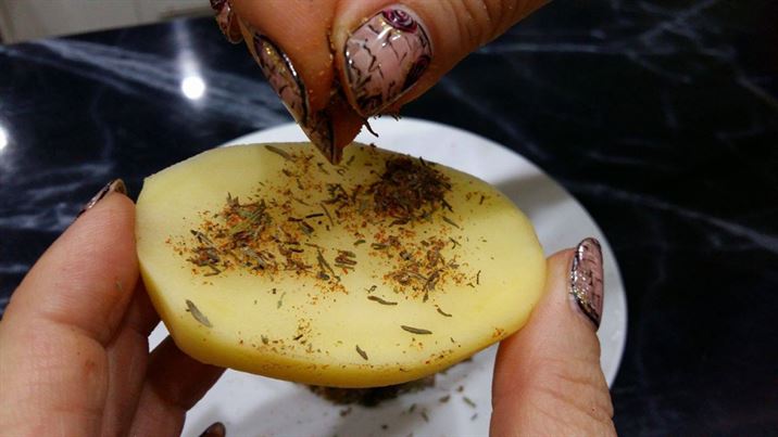 и с тях поръсваме плоската част на всеки картоф.