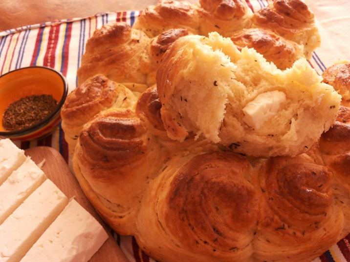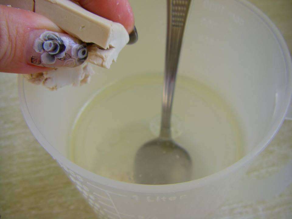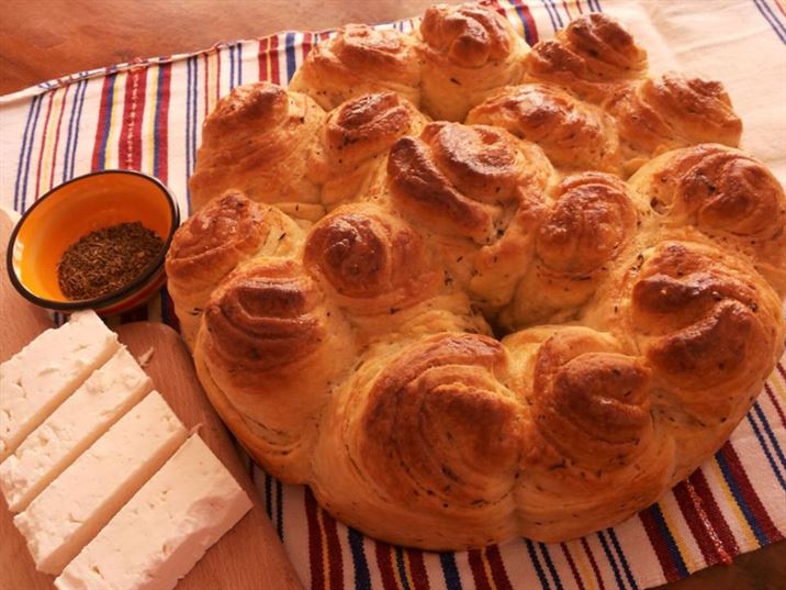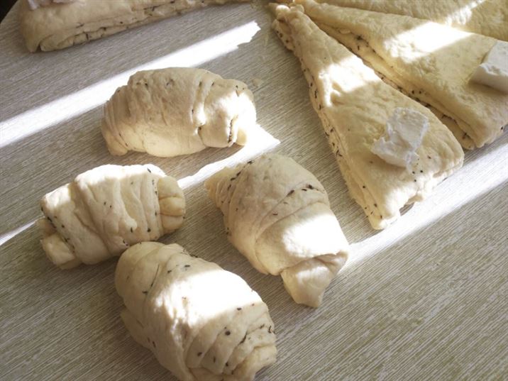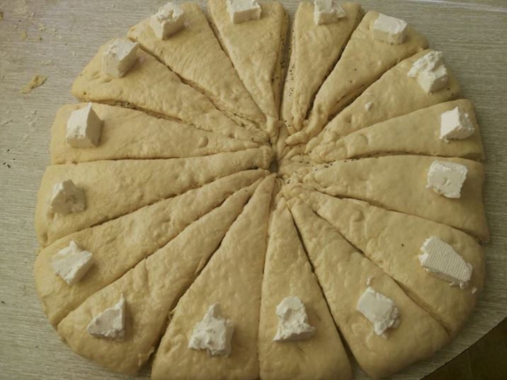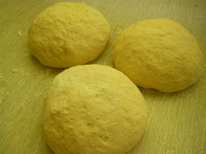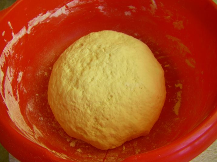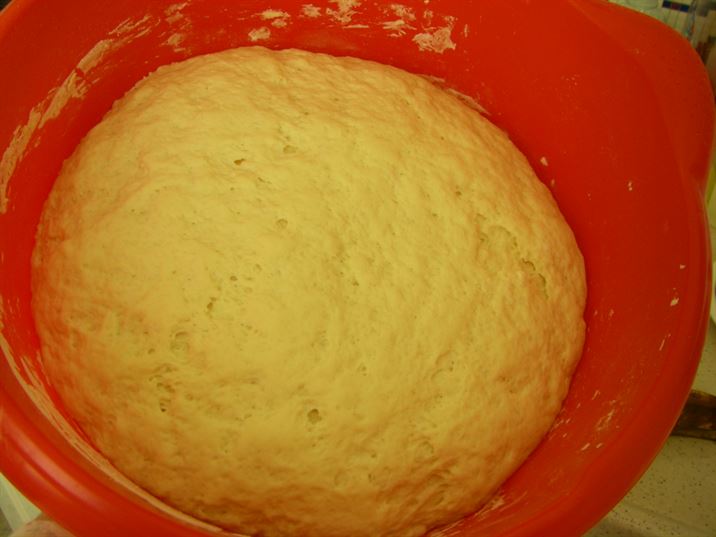 В ЛЕКО ТОПЛАТА ВОДА РАЗТВОРЕТЕ МАЯТА И ПРИБАВЕТЕ ЗАХАРТА И 2-3 СУПЕНИ ЛЪЖИЦИ ОЛИО. СМЕСЕТЕ БРАШНАТА СЪС СОЛТА И КЪМ ТЯХ ПОСТЕПЕННО ПРИБАВЯЙТЕ ВОДАТА В КОЯТО РАЗТВОРИХТЕ МАЯТА. ОМЕСЕТЕ МЕКО ТЕСТО, КАТО ДОБАВИТЕ МАЛКО БЯЛО БРАШНО ДОКАТО МЕСИТЕ.