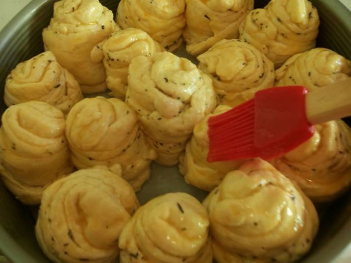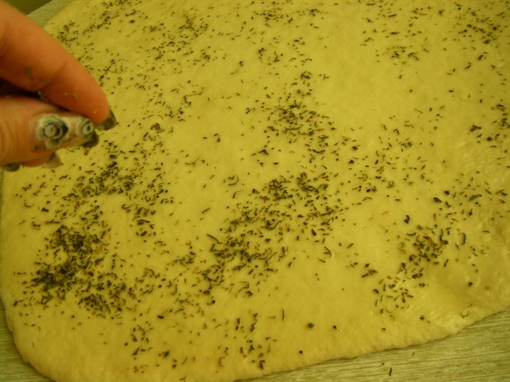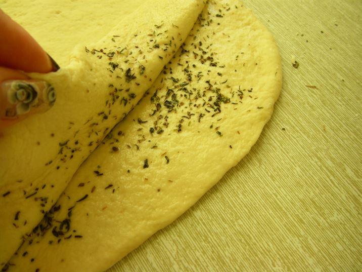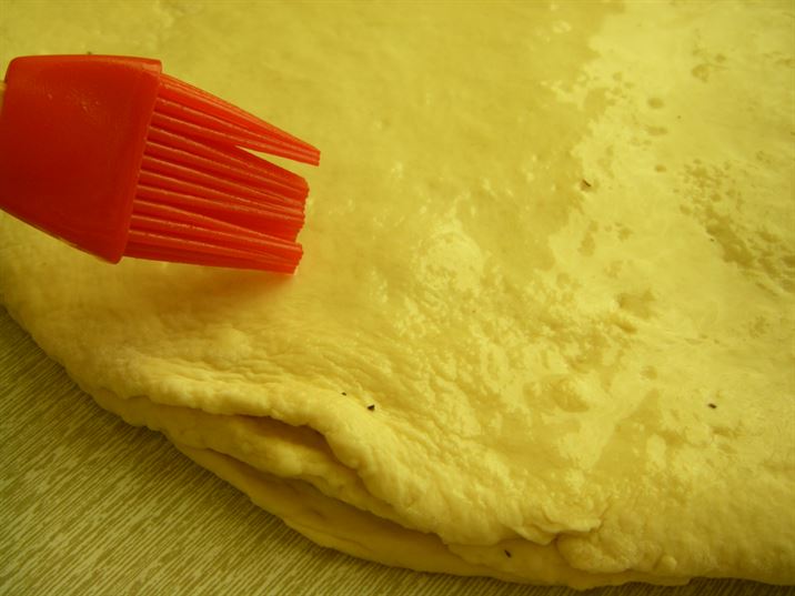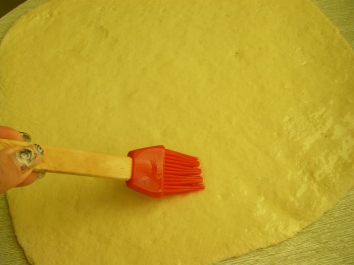 НАМАЖЕТЕ ПИТКАТА С РАЗБИТ ЖЪЛТЪК В КОЙТО СТЕ СЛОЖИЛИ НЯКОЛКО КАПКИ ОЛИО