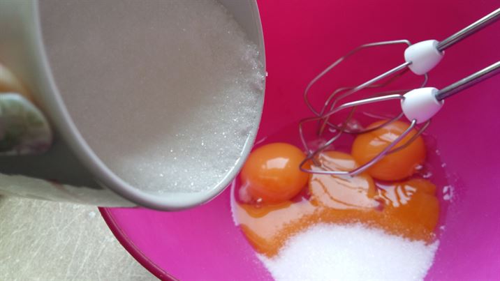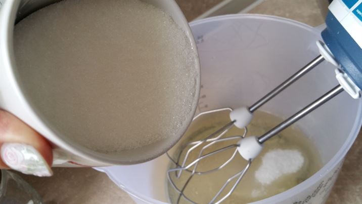 За целувчената смес с помощта на миксер разбивате белтъците заедно със захарта,