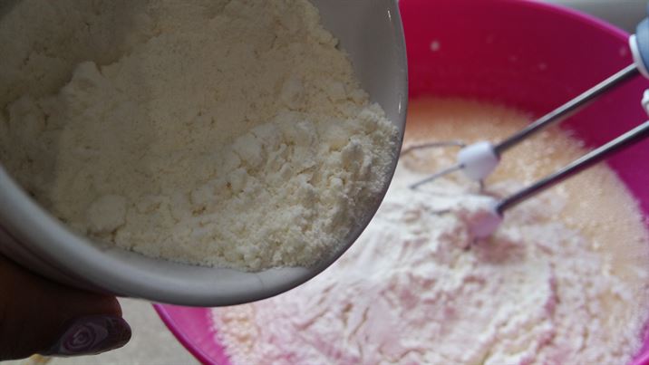 С помощта на миксер разбивате добре всички продукти за блата жълтъците, захарта, киселото мляко и ванилията.