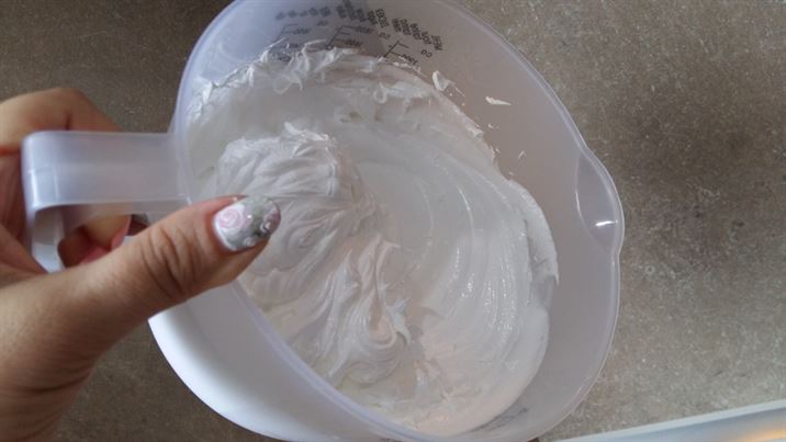 до получаване на твърда смес която като обърнете купата не трябва да пада.