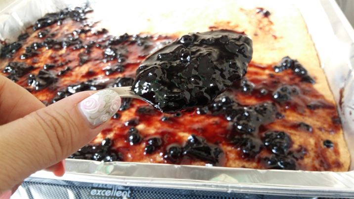 1 бурканче ( 370 гр) сладко за намазване( в моя случай от боровинки и сини сливи)