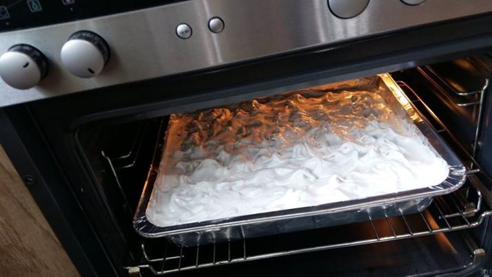 печете за 5-6 минути в предварително загрята на 220 градуса фурна само на горен реоан до бледо кафяв цвят.