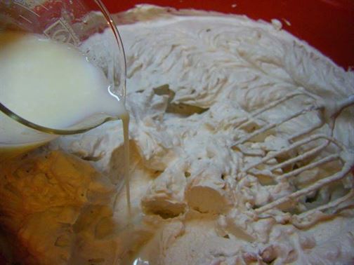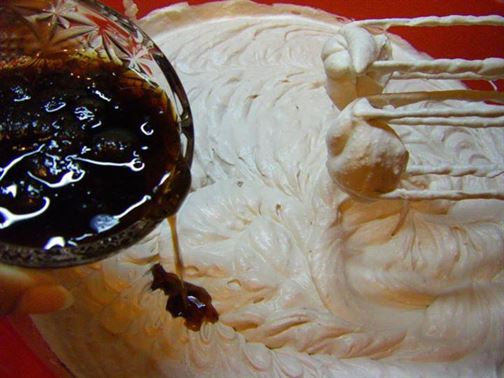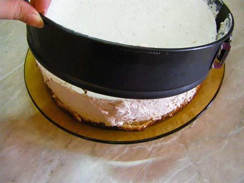ЗА БЛАТА РАЗБИВАТЕ ЯЙЦАТА СЪС ЗАХАРТА,ПРИБАВЯТЕ БРАШНОТО И ВЪРХУ НАМАЗАНА С МАЗНИНА ХАРТИЯ ЗА ПЕЧЕНЕ ИЗСИПВАТЕ СМЕСТА В ТАВИЧКА С ГОЛЕМИНА ОТ 26 СМ.ПЕЧЕТЕ НА 220 ГРАДУСА .ПРОВЕРЯВАТЕ С КЛЕЧКА ЗА ЗЪБИ ДАЛИ БЛАТА Е ГОТОВ.СЛЕД КАТО СЕ ОХЛАДИ СЕ ОТЛЕПВА ОТ ХАРТИЯТА И СЕ ПОСТАВЯ В ПОДХОДЯЩА ЧИНИЯ ЗА ТОРТА.СИРОПИРАТЕ С МАЛКО СИРОП ОТ КОМПОТ ПО ВАШ ИЗБОР.ЗА КРЕМА РАЗБИВАТЕ МАСЛОТО СЪС ЗАХАРТА,СЛЕД ТОВА ПРИБАВЯТЕ СМЕТАНАТА (СЪДА ТРЯБВА ДА БЪДЕ ДЪЛБОК И ГОЛЯМ,ЗАЩОТО СМЕТАНАТА УВЕЛИЧАВА ОБЕМА СИ ).РАЗБЪРКВАНЕТО ПРОДЪЛЖАВА ДО СГЪСТЯВАНЕ НА СМЕТАНАТА.ПРИБАВЯТЕ КАКАОТО,СЛАДКОТО И ОТНОВО РАЗБЪРКВАТЕ (КАКТО МОЖЕ ДА ВИДИТЕ ОТ СНИМКИТЕ "СТЪПКА ПО СТЪПКА").ОТДЕЛНО В ПРЯСНОТО МЛЯКО РАЗБЪРКВАТЕ ЖЕЛАТИНА И ГО РАЗТВАРЯТЕ НА ВОДНА БАНЯ.ОСТАВАТЕ ГО ДА СЕ ОХЛАДИ И ГО ПРИБАВЯТЕ ПОСТЕПЕННО КЪМ СМЕТАНАТА,КАТО БЪРКАТЕ НЕПРЕКЪСНАТО.ИЗПОЛЗВАТЕ РИНГА ОТ ТАВИЧКАТА В КОЯТО СТЕ ПЕКЛИ БЛАТА И ИЗСИПВАТЕ КРЕМА ВЪРХУ БЛАТА.ЗАГЛАЖДАТЕ ХУБАВО С ПОДХОДЯЩА ЛЪЖИЦА ИЛИ ШПАТУЛА И ОСТАВЯТЕ ТОРТАТА В ХЛАДИЛНИКА ЗА 4-5 ЧАСА ДА СЕ СТЕГНЕ (НАЙ-ДОБРЕ ЗА ЕДНА НОЩ ).СЛЕД ТОВА С ПОМОЩТА НА НОЖ ОТЛЕПВАТЕ ТОРТАТА ОТ РИНГА И ВНИМАТЕЛНО ГО МАХАТЕ.НАСТЪРГВАТЕ НА ЕДРО ШОКОЛАДА И УКРАСЯВАТЕ ТОРТАТА.СТАВА СТРАХОТНА НА ВКУС. ПРОБВАЙТЕ И СПОДЕЛЕТЕ. ДА ВИ Е СЛАДКО.