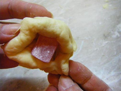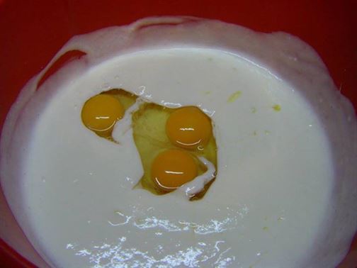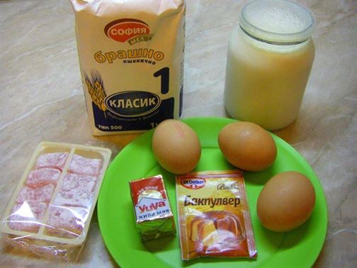 1 КОФИЧКА КИСЕЛО МЛЯКО, 1 (10 ГР) БАКПУЛВЕР, 3 ЯЙЦА, 1-2 ЩИПКИ СОЛ, 40 ГР ЖИВА МАЯ, ОКОЛО 800 ГР БРАШНО,ЛОКУМ.
