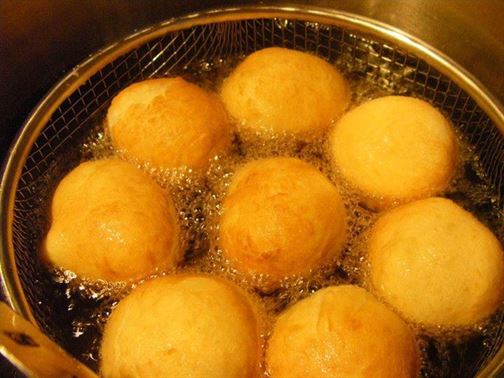СЛАГАМЕ БАКПУЛВЕРА В КИСЕЛОТО МЛЯКО И БЪРКАМЕ , ДОКАТО ШУПНЕ, ПРИБАВЯМЕ ЯЙЦАТА, 1-2 ЩИПКИ СОЛ И МАЯТА. ОМЕСВАМЕ МЕКО ТЕСТО, КАТО ПРИБАВЯМЕ ПОСТЕПЕННО БРАШНОТО. РАЗДЕЛЯМЕ НА ОКОЛО 30-32 ТОПЧЕТА. ОСТАВЯМЕ ГИ ЗА ОКОЛО 10-15 МИНУТИ ДА ВТАСАТ. СЛАГАМЕ В СРЕДАТА НА ВСЯКО ТОПЧЕ ПАРЧЕНЦЕ ЛОКУМ (КАКТО МОЖЕ ДА ВИДИТЕ ОТ СНИМКИТЕ "СТЪПКА ПО СТЪПКА"). ПЪРЖИМ ГИ В ДЪЛБОК СЪД В СИЛНО НАГОРЕЩЕНО ОЛИО. ОЩЕ ТОПЛИ ГИ ПОРЪСВАТЕ ОБИЛНО С ПУДРА ЗАХАР. ДОМАШНИТЕ ПОНИЧКИ СТАВАТ СТРАХОТНИ И СА ДОБРА ИДЕЯ КЪМ СУТРИШНОТО КАФЕ. ПРОБВАЙТЕ И СПОДЕЛЕТЕ. ДА ВИЕ СЛАДКО.