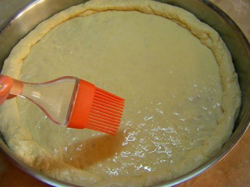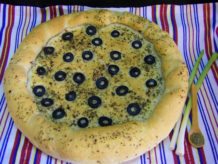 РАЗТВОРЕТЕ МАЯТА В ХЛАДКАТА ВОДА. В ДЪЛБОКА КУПА ПРЕСЕЙТЕ БРАШНОТО ( ТАКА ТЕСТОТО БУХВА ПО ДОБРЕ, ЗАЩОТО ПРИ ПРЕСЯВАНЕТО ВЛИЗА ВЪЗДУХ). НАПРАВЕТЕ КЛАДЕНЧЕ В СРЕДАТА ИЗСИПЕТЕ МАЯТА (КАКТО МОЖЕ ДА ВИДИТЕ ОТ СНИМКИТЕ "СТЪПКА ПО СТЪПКА"), СОЛТА И ЗАПОЧНЕТЕ ДА МЕСИТЕ, ДОКАТО ЗАПОЧНЕ ТЕСТОТО ДА СЕ ОТДЕЛЯ ОТ РЪКАТА ВИ. ПРИБАВЕТЕ ОЛИОТО И ПРОДЪЛЖЕТЕ С ОМЕСВАНЕТО, ДОКАТО ТЕСТОТО ПОЕМЕ МАЗНИНАТА И СТАНЕ РАЗТЕГЛИВО. ОСТАВЕТЕ ДА ВТАСА, ДОКАТО УДВОИ ОБЕМА СИ И РАЗДЕЛЕТЕ НА ДВЕ ЧАСТИ. ВСЯКА ЧАСТ РАЗТОЧЕТЕ С ДЕБЕЛИНА ОКОЛО 1 СМ И ПОСТАВЕТЕ В НАМАЗАНА С ОЛИО ТАВА, КАТО КРАИЩАТА НА КОРАТА ТРЯБВА ДА ИЗЛИЗАТ ИЗВЪН ТАВАТА, НАВИВАТЕ ГИ ТАКА, ЧЕ ДА СЕ ПОЛУЧИ КАТО БОРД. НАМАЗВАТЕ С ОЛИО, ПОРЪСВАТЕ СЪС СИТНО НАРЯЗАН ЧЕСЪН, РИГАН И НАРЯЗАНИ НА КРЪГЧЕТА МАСЛИНИ. ПЕЧЕТЕ В ПРЕДВАРИТЕЛНО ЗАГРЯТА НА 200 ГРАДУСА ФУРНА ЗА ОКОЛО 20 МИНУТИ ДО ЗЛАТИСТ ЦВЯТ. ПРОБВАЙТЕ И СПОДЕЛЕТЕ. ДА ВИ Е СЛАДКО.