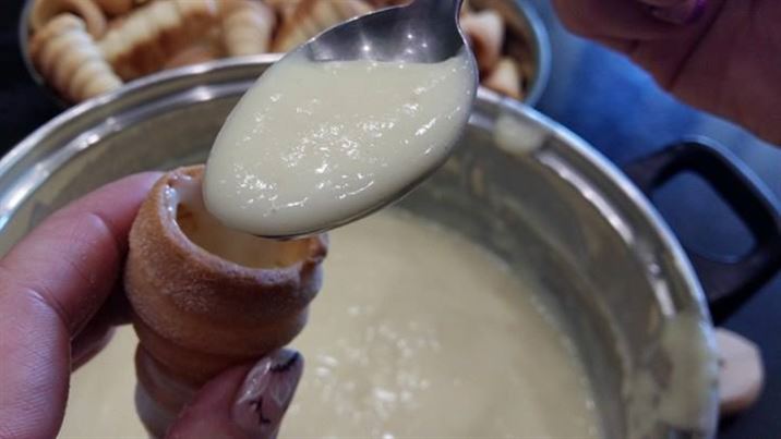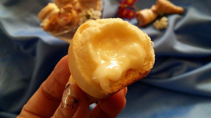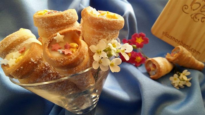 Фунийките се пълнят с готовия крем, който трябва да бъде топъл.