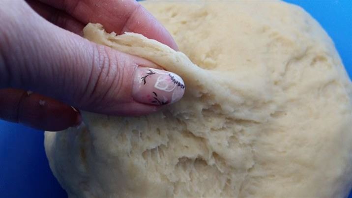 Замесва се меко тесто, като постепенно се добавя брашното.