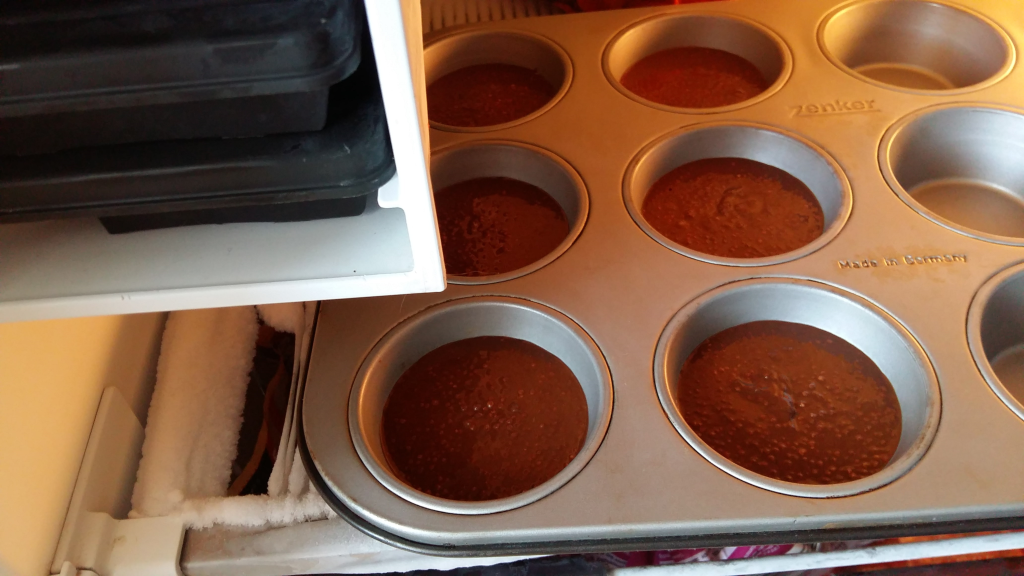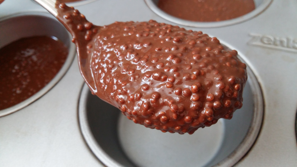 След това разпределете шоколадовата смес в тавичка за мъфини.
