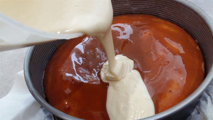 Изваждате изпечената торта до суха клечка. Намазвате я отгоре отново с мармалад