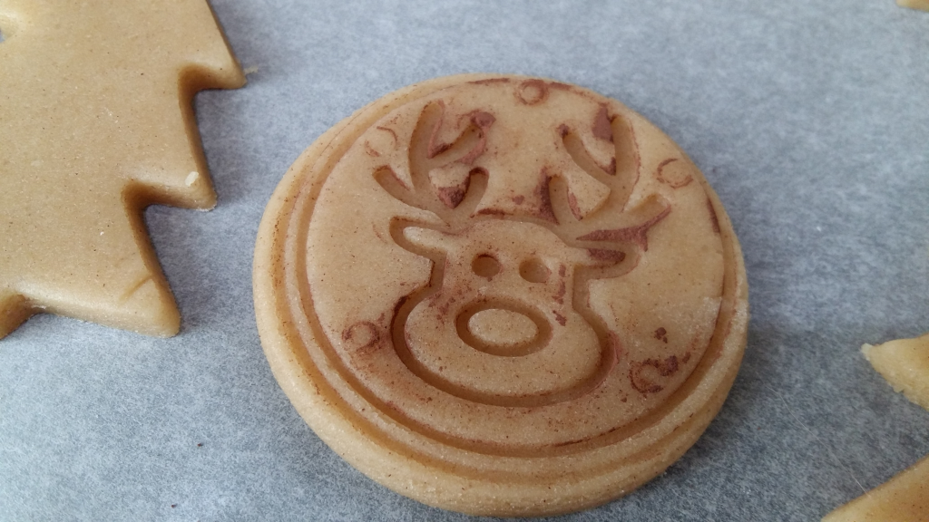 Ако искате като мен набързо да украсите вашите меденки за Коледа или не сте много уверени в рисуването с айсинг, може да ползвате печати за бисквити, които се предлагат с различни щампи или пък релефна точилка с коледни мотиви. Топнете печата в какао, за да имате по-отчетлив и контрастен отпечатък върху медените сладки. Печатът се топва в какаото без да се мокри предварително. Топвате, изтръсквате