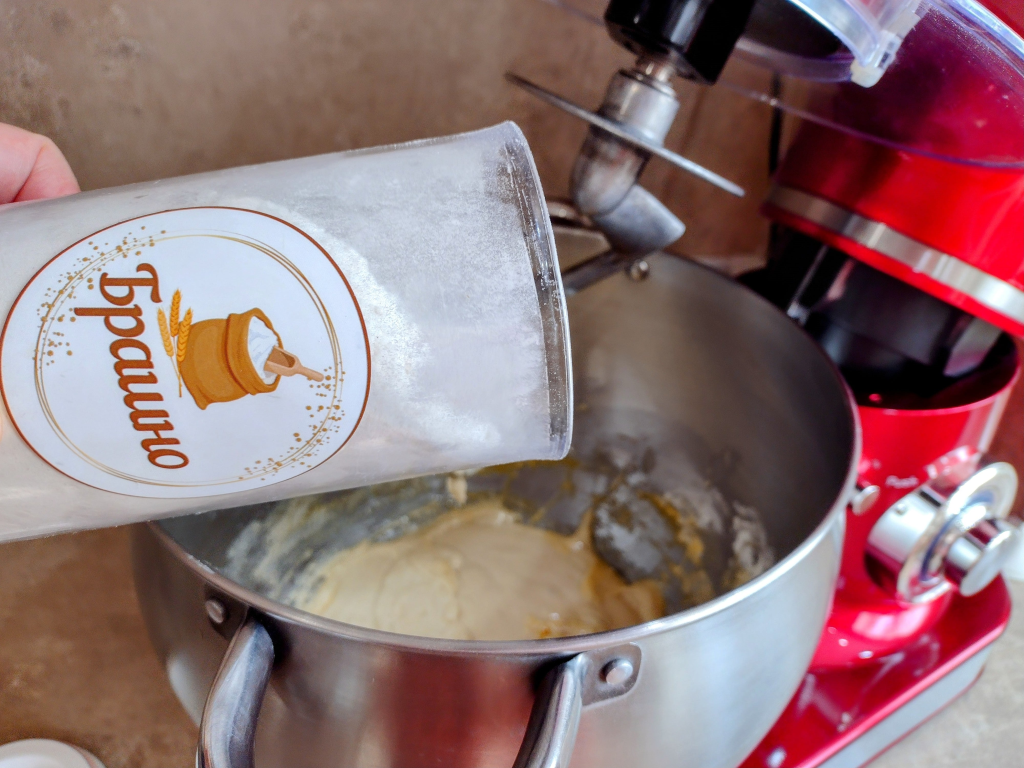 и на два пъти прибавете останалата част от брашното.