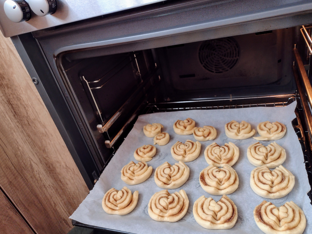 Наредете кифличките в намазнена или в застлана с хария за печене тава. Оставете да втасат 15 минути.