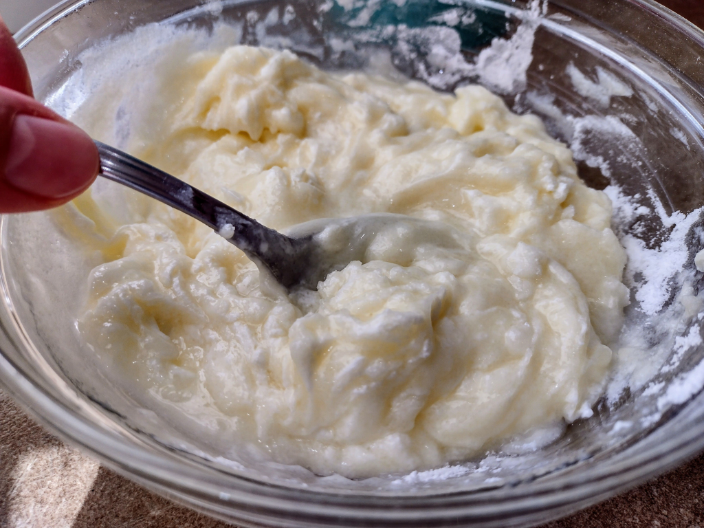 Пригответе глазурата като разбъркате всичките съставки до напълно гладък крем.