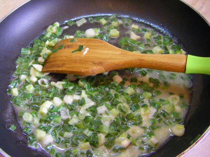 Нарежете лука на ситно и го запържете в маслото с 4–5 с.л. вода до пълно омекване.