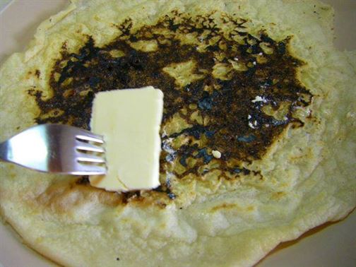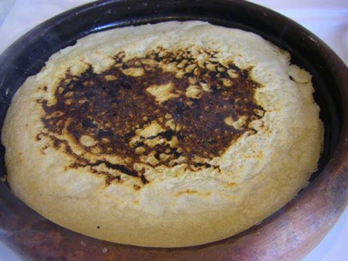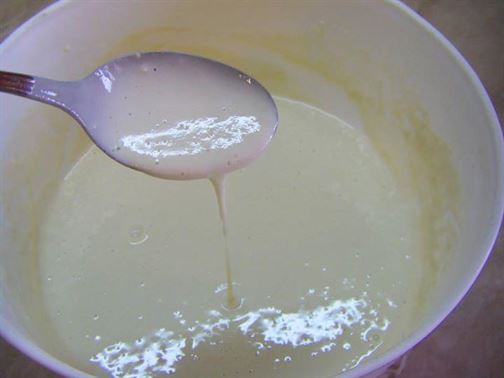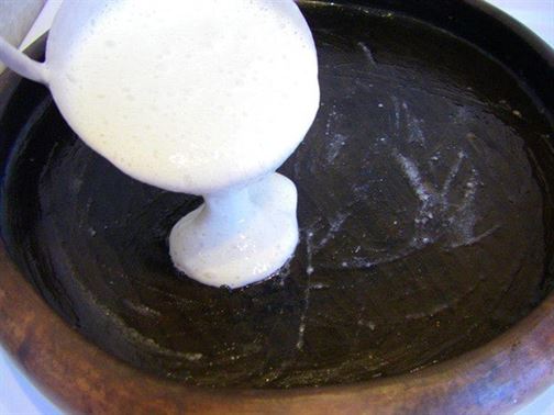 С черпак сипвайте от сместа върху горещия и намазан сач. Дебелината на катмата трябва да е около 4–5 мм. Когато по краищата вече няма сурово тесто и се появят шупли, внимателно я обърнете с лопатка да се запече и от другата страна.