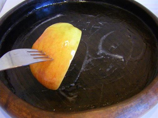Загрейте сача и го намажете с парче ябълка, потопено в мазнина, в която предварително сте разбили жълтъка (както се вижда на снимките „стъпка по стъпка“). Повтаряйте намазването преди всяка катма.