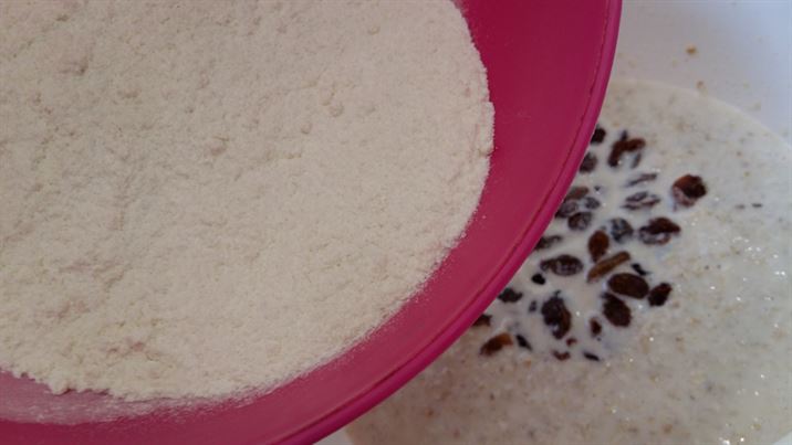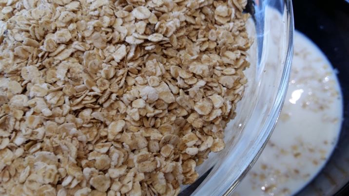 Накиснете овесените ядки в прясното мляко за 10-15 минути.