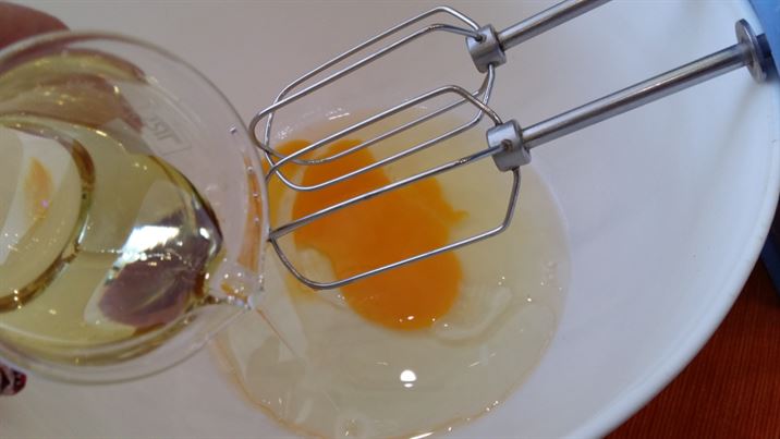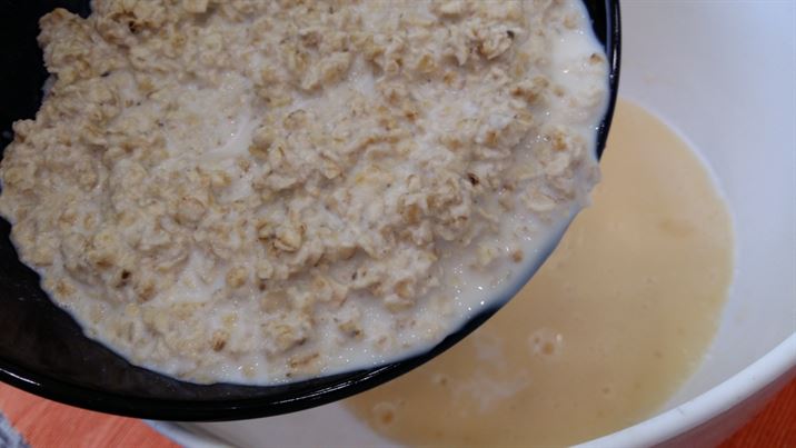Добавете към яйчената смес вече омекналите овесени ядки.