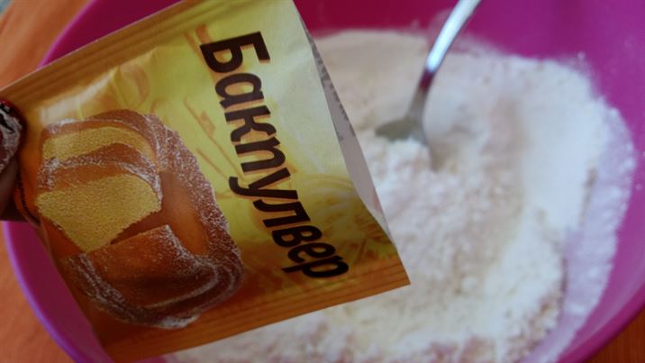 Отделно разбъркайте брашното, захарта и бакпулвера.