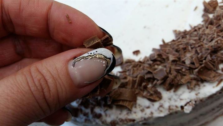 За украса: 100 гр бял шоколад и 100 гр млечен шоколад
