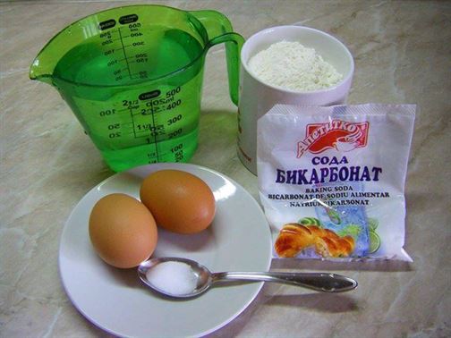 ЗА 10 БРОЯ: 2 ЯЙЦА,700 МЛ СТУДЕНА ВОДА,1/2 ЧАЕНА ЛЪЖИЦА СОДА БИКАРБОНАТ,ОКОЛО 380 ГР БРАШНО (2 И 1/2 ЧАЕНИ ЧАШИ),1/2 ЧАЕНА ЛЪЖИЦА СОЛ.