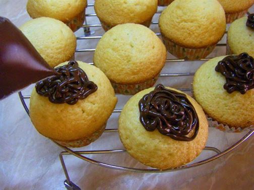 Това са от този вид мъфини, които са пухкави, ароматни и много вкусни. Украсата носи допълнителна емоция и зрителна наслада. Заслужава си да се опитат.