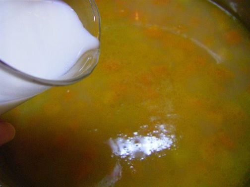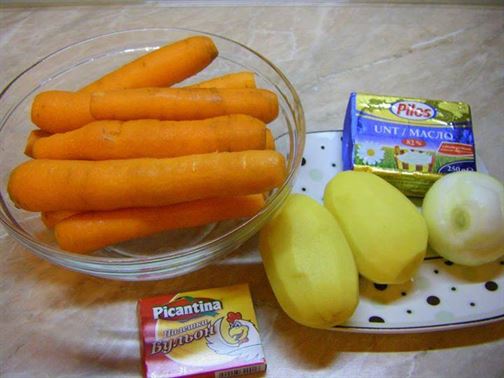 ОКОЛО 1 КГ МОРКОВИ, 1 ГЛАВА КРОМИД, 2 КАРТОФА, ОКОЛО 30-40 ГР МАСЛО, СОЛ НА ВКУС, 2 ЛИТРА ПИЛЕШКИ БУЛЬОН,100 МЛ ПРЯСНО МЛЯКО, ПО ВАШЕ ЖЕЛАНИЕ МОЖЕ ДА СЛОЖИТЕ МЛЯН ЧЕРЕН ПИПЕР