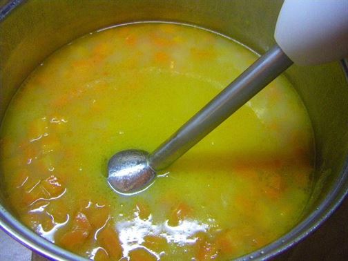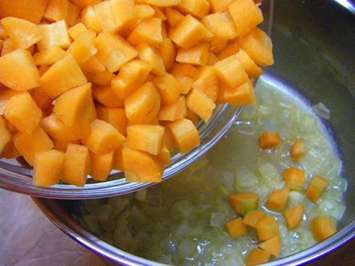 ПОЧИСТЕТЕ И НАРЕЖЕТЕ НА ЕДРИ КУБЧЕТА МОРКОВИТЕ, КАРТОФИТЕ И КРОМИДА. ЗАПЪРЖЕТЕ КРОМИДА В МАСЛОТО. ДОБАВЕТЕ КАРТОФИТЕ И МОРКОВИТЕ (КАКТО МОЖЕ ДА ВИДИТЕ ОТ СНИМКИТЕ "СТЪПКА ПО СТЪПКА") И БЪРКАЙТЕ 1-2 МИНУТИ. СИПЕТЕ БУЛЬОНА И ВАРЕТЕ ДО ПЪЛНОТО ОМЕКВАНЕ НА ЗЕЛЕНЧУЦИТЕ. ДРЪПНЕТЕ ОТ КОТЛОНА, РАЗРЕДЕТЕ С ПРЯСНОТО МЛЯКО И ПАСИРАЙТЕ ЗЕЛЕНЧУЦИТЕ. ПОДПРАВЕТЕ НА ВКУС. СУПАТА Е ЛЕКА, ВКУСНА И МНОГО ПОДХОДЯЩА ЗА РАЗТОВАРВАНЕ СЛЕД ТЕЖКИ ПРАЗНИЧНИ ТРАПЕЗИ. ПРОБВАЙТЕ И СПОДЕЛЕТЕ. ДА ВИ Е СЛАДКО.