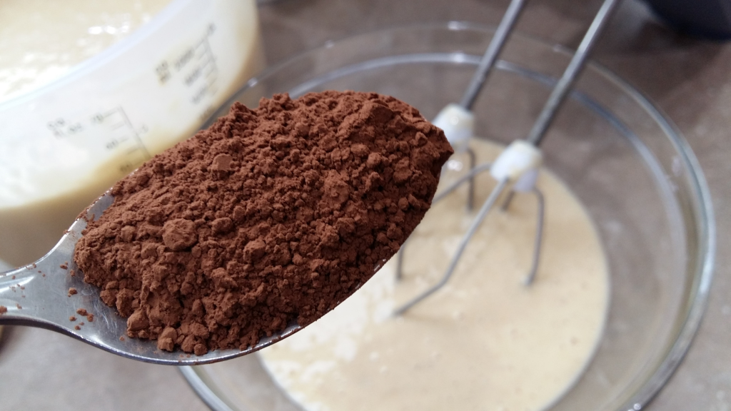 В подходяща купичка малка част от готовата смес объркайте с една супена лъжица какао.