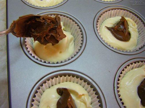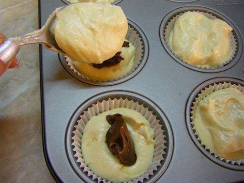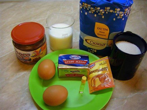14-15 броя: 125 г меко масло,1 ч.ч. захар,2 ч.ч. брашно,10 гр бакпулвер,2 яйца,200 мл прясно мляко,1 ванилия,около 150 гр течен шоколад.