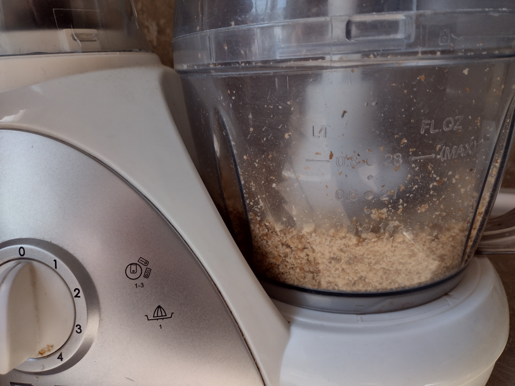 Орехите ги пуснете за кратко в блендера.