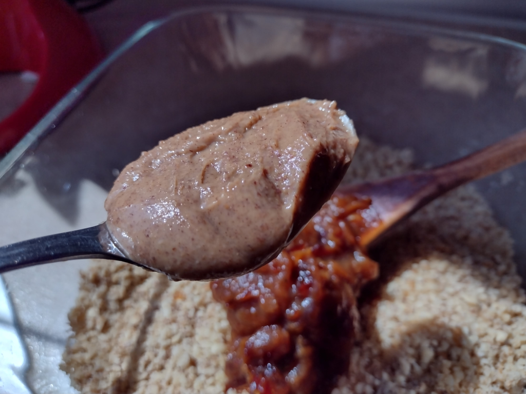 Фъстъчен тахан с протеин, какао и стевия – 1 и 1/2 с.л. (може да ползвате и само чист фъстъчен тахан)