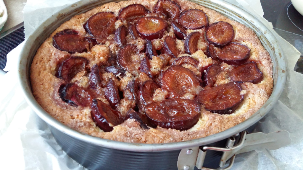 От това, че са поръсени сливите със захар, се получава сладък сос между сливите, но по време на изстиването той се попива в тестото.