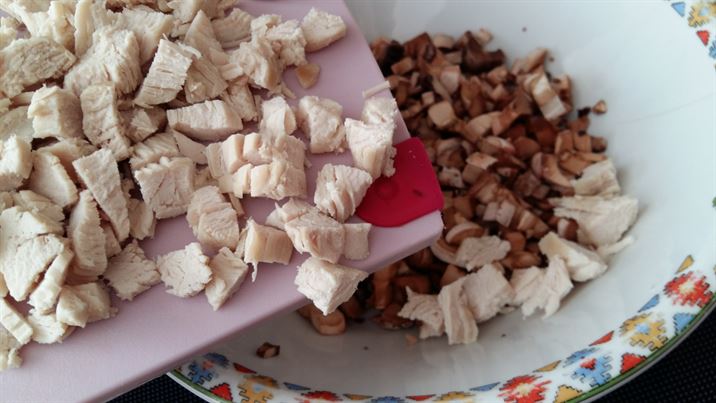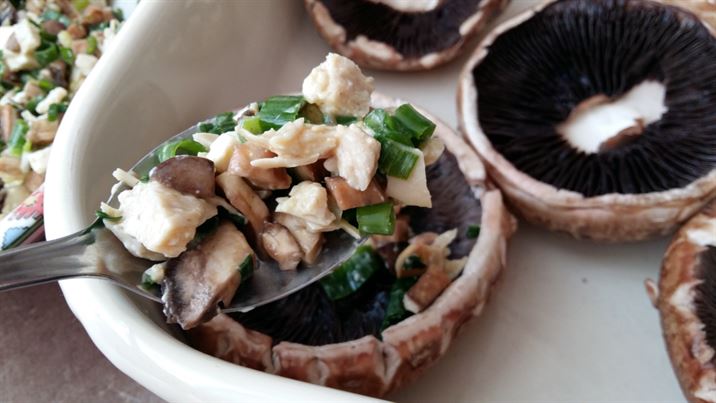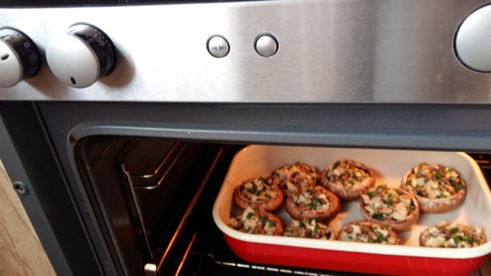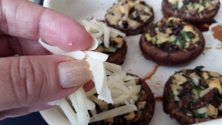 Напълнете предварителто посолените шапчици на гъбите с плънката