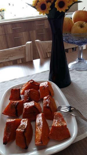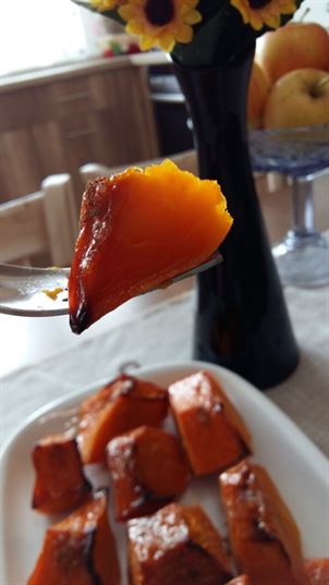 Всъщност, ако има нещо, което най-много да обичам на света, то е печена тиква. Селско ли е да се яде печена тиква не знам, но когато аромата на тиква и карамелизираща захар докосне нослето ти, мигом ще забравиш от "градО или селО си".