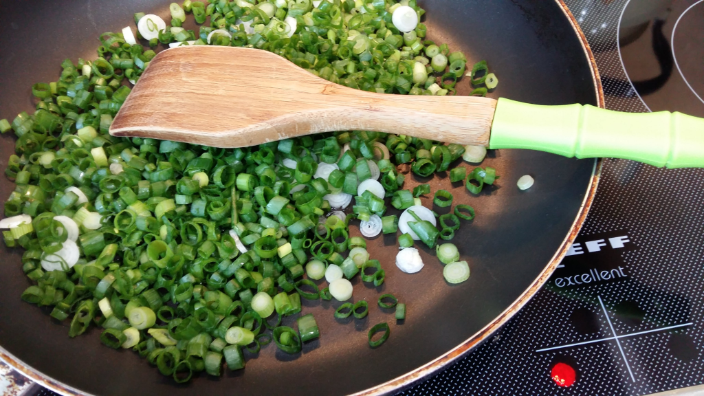 и се задушава в 2-3 супени лъжици зехтин няколко минути до омекване.