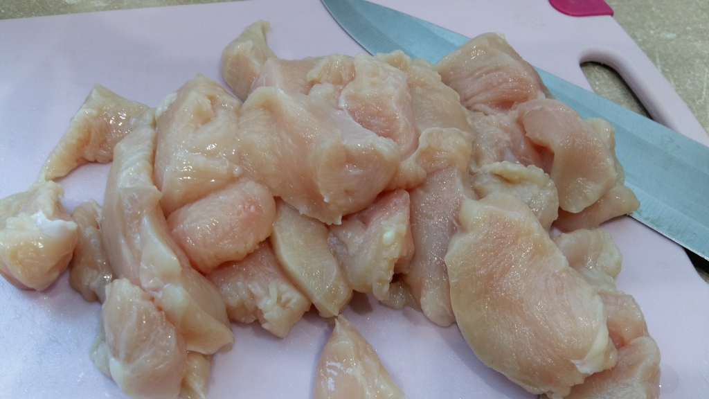Месото нарежете на хапки.